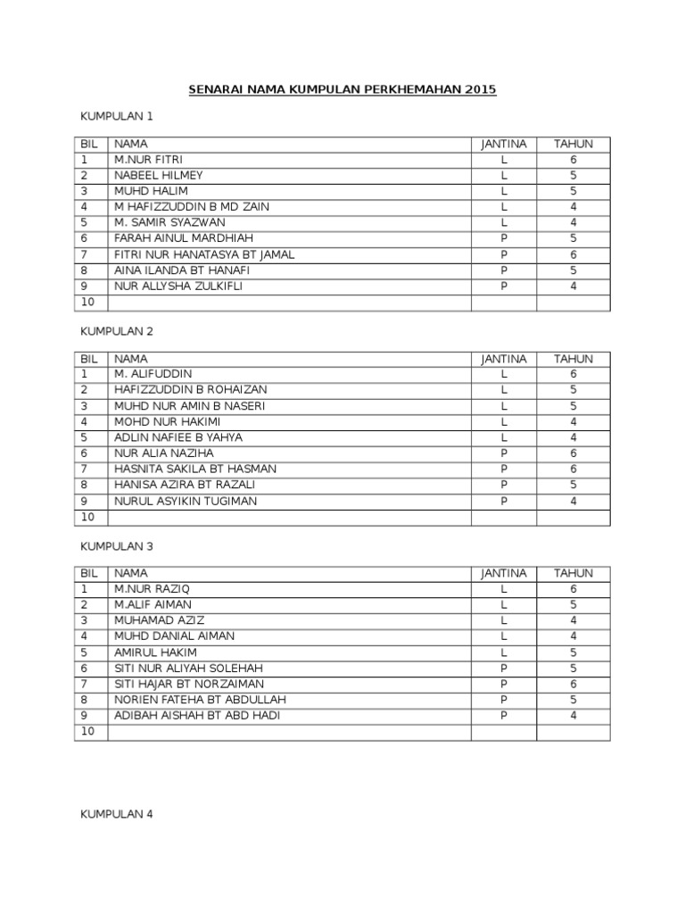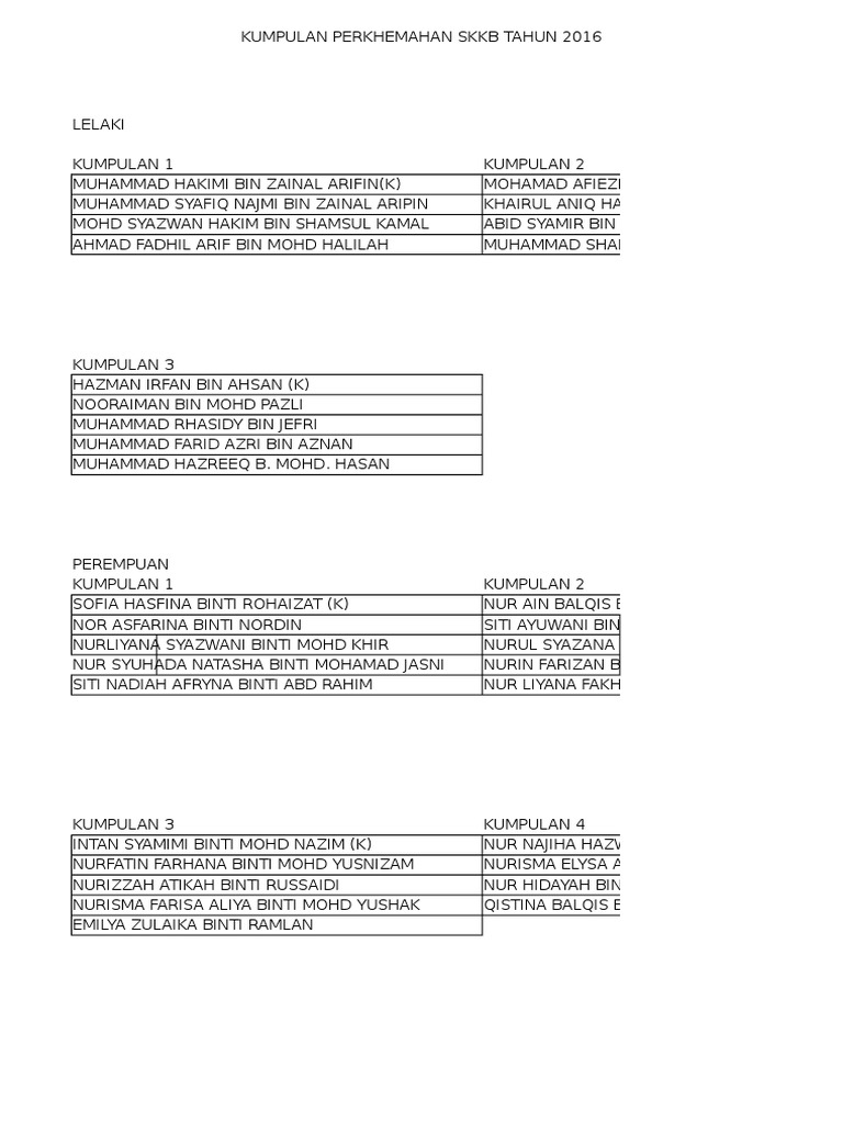 Senarai Nama Kumpulan Perkhemahan 2015 Pdf Document