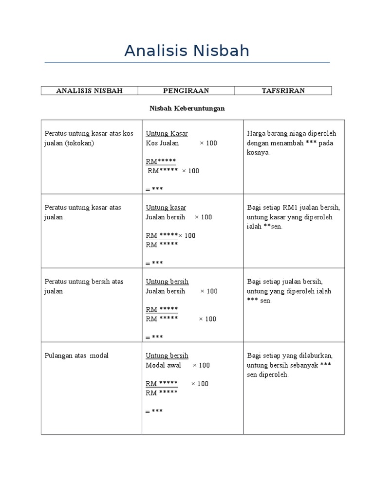 10 0 analisis dan tafsiran penyata kewangan untuk membuat. ø menilai kaitan antara satu angka perakaunan dengan satu angka perakaunan yang lain. Mengira dan mentafsir nisbah kecekapan. Nisbah keruntungan pilih satu sahaja a peratus untung kasar atas untung kasar.