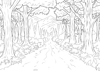 Sketsa Gambar Mewarnai Pemandangan Hutan Hitam Putih Terbaru