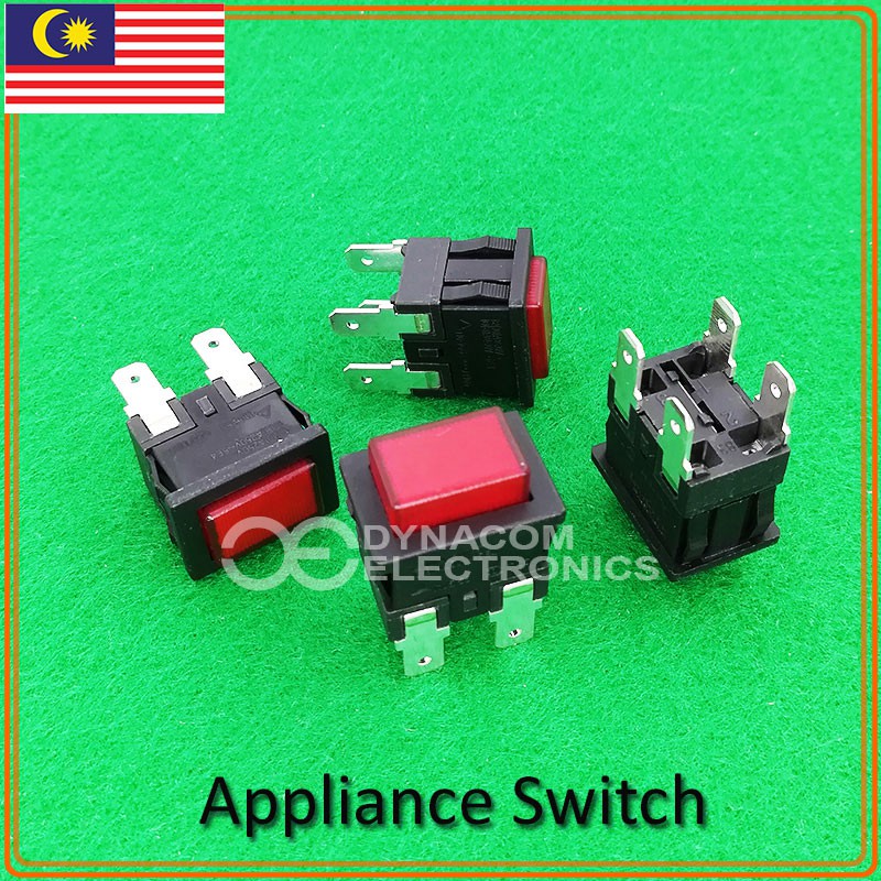 250vac 8a 4 Pins Push On Off Switch Red Lamp Suis Perkakas Rumah
