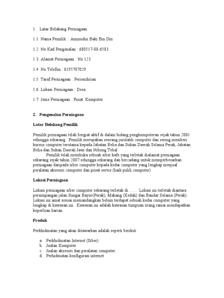 Doc Contoh Rancangan Perniagaan Shahrul Kamal Ramli Academia Edu